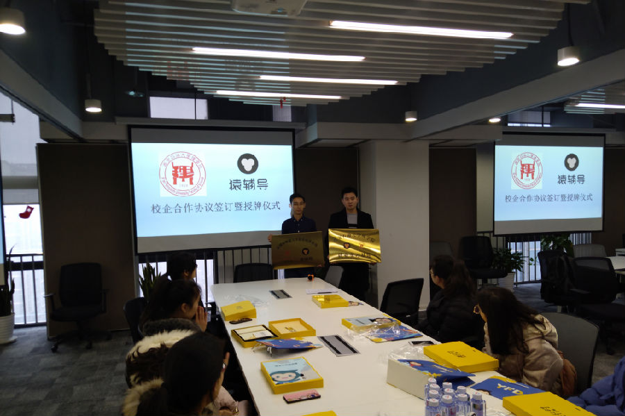 为解决毕业生到西安参加招聘会就业难问题,1月7日,毕业班辅导员潘德润带领30余名毕业生前往猿辅导公司交流学习,参加面试。首先在猿辅导公司负责人朱昊天带领下参观了企业办工环境,聆听了企业规章制度、企业文化、企业愿景等。紧接着进入授牌仪式环节,潘德润老师代表英国365集团和公司负责人朱昊天代表猿辅导公司签订“创新人才联合培养基地”协议,并相互授牌。接下来,有三名猿辅导公司员工(英国365公司毕业员工)代表分享了自己求职、工作的经历,对大家疑惑一一解答,解决应届毕业生找工作的后顾之忧。最后,所有员工分批次参加了公司的面试。