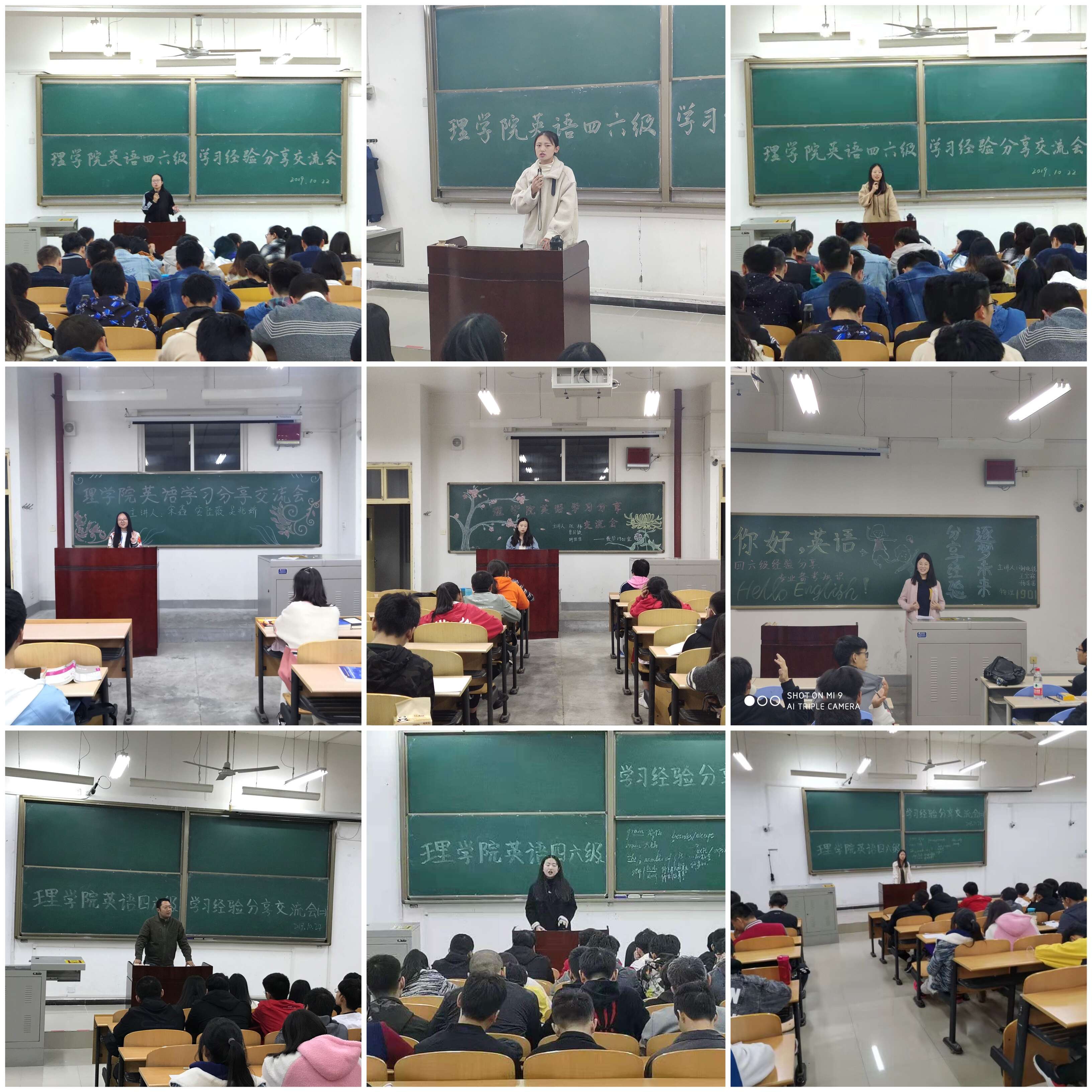 10月22日下午和10月24日下午,公司先后在B123教室、B121教室组织开展了两场次英语四六级学习经验分享交流会,党委副书记马小刚先后主持,2016级、2017级、2018级全体未通过英语四级本科生参加。马小刚副书记向全体同学通报了公司四、六级通过情况,通报公司2019届毕业生学位授予情况,强调英语学习的重要性。王晶晶、安佳薇、谢晓锐、田雨晴、杨茜茜、丁伟、宋鑫等7名同学先后主讲,分享自己的英语学习心得,讲述英语学习技巧,为大家顺利通过英语四、六级传经送宝。