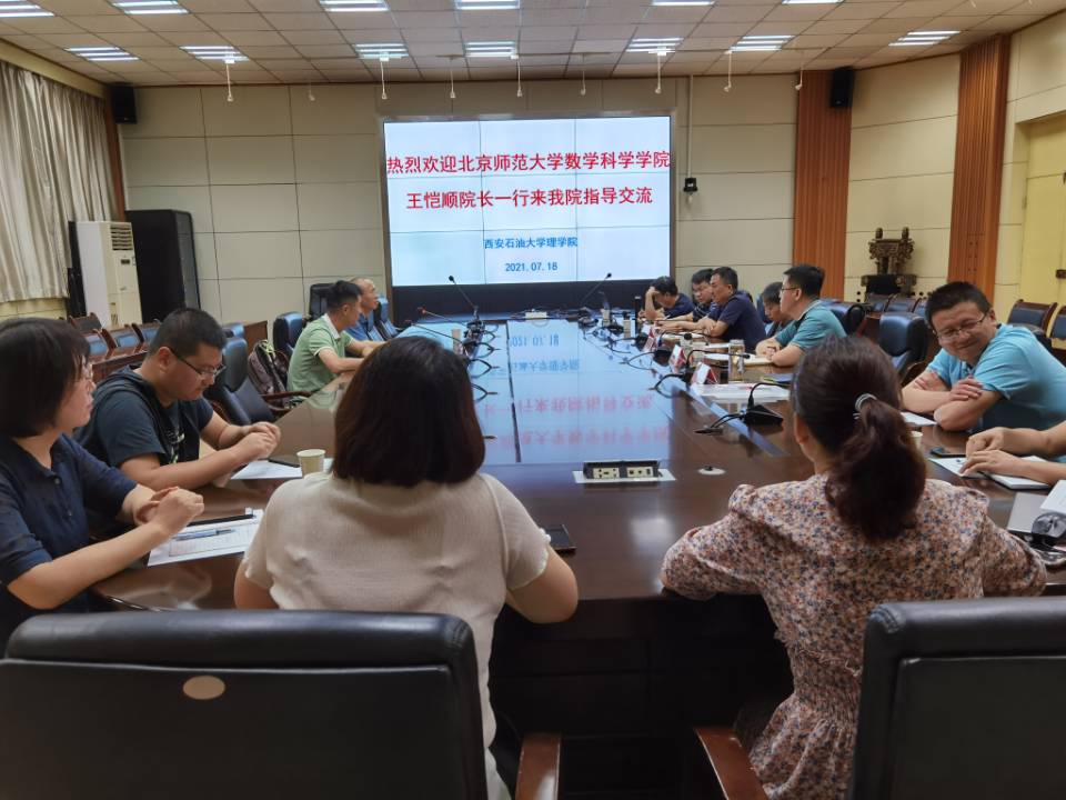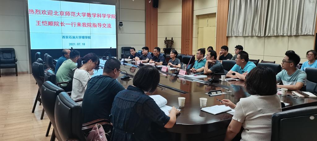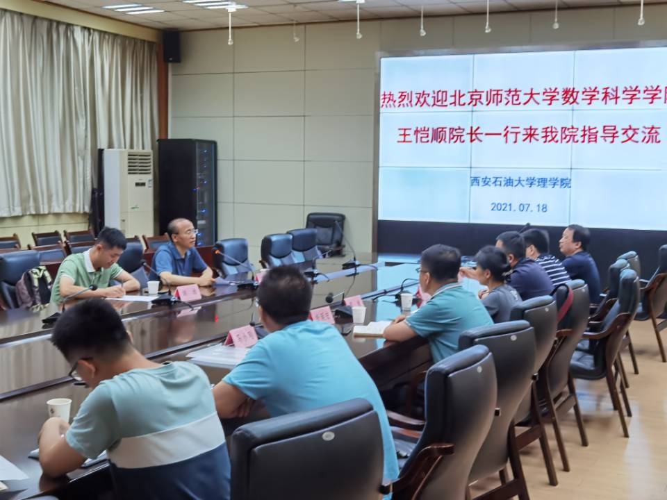 7月18日上午,北京师范大学数学科学公司王恺顺经理、胡维副经理来公司交流并作学术报告,活动在雁塔校区会议中心第二会议室举办。公司党委书记廖敏,经理傅海威,党委副书记马小刚,副经理折延宏,副经理陈国祥,数学学科三个教研室负责人参加工作交流,部分数学学科教师听取王恺顺经理的学术报告。公司经理傅海威主持会议。