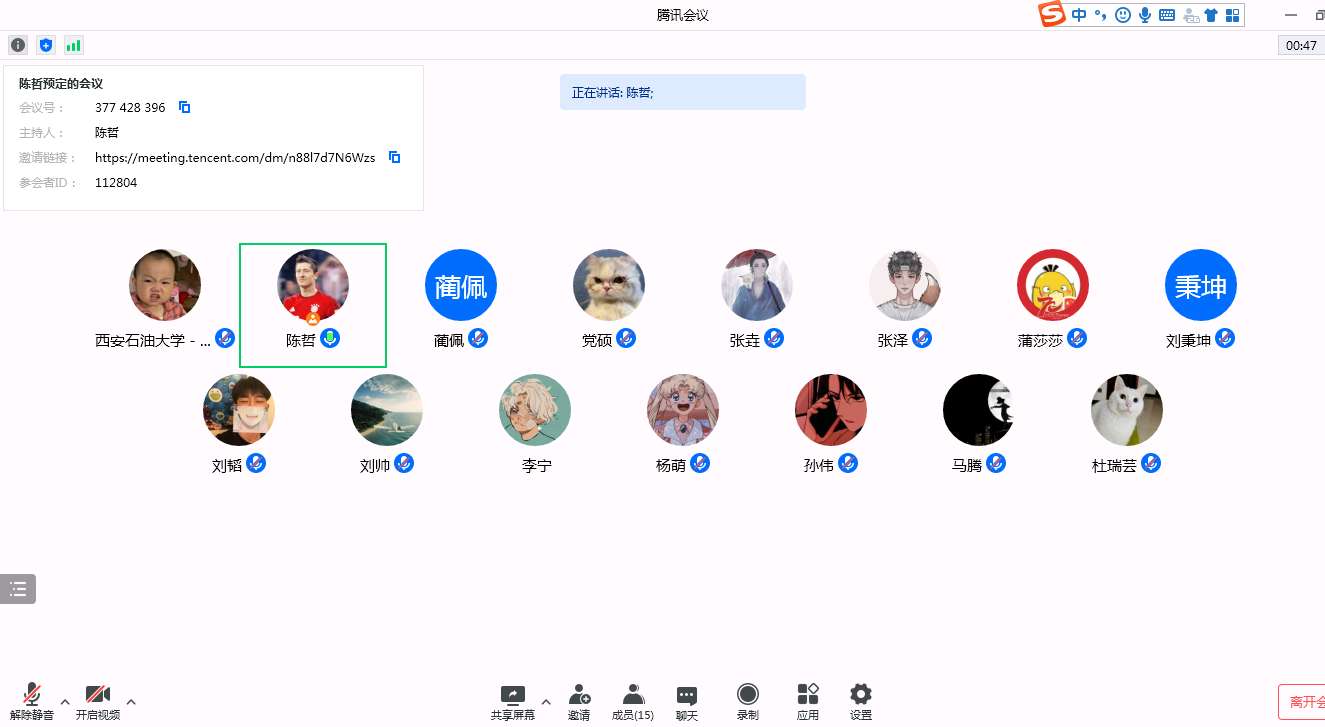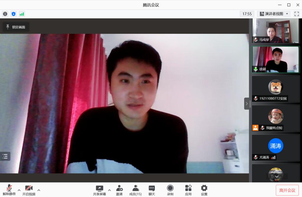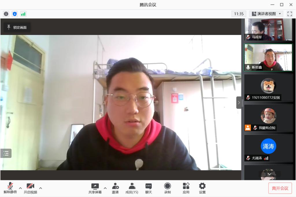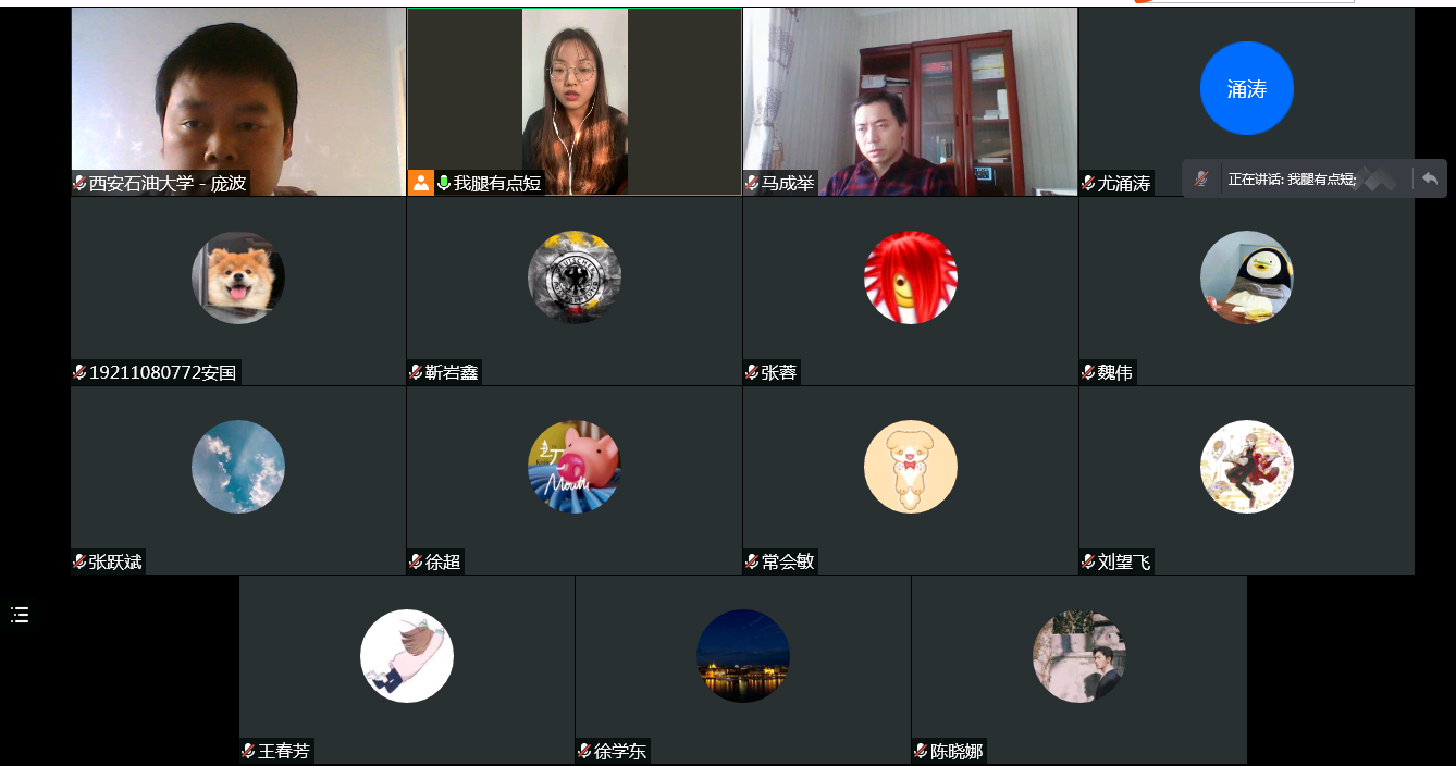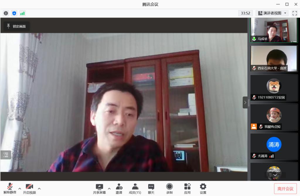 主题党日活动的第二阶段是交流发言环节,三个党支部分别组织召开支部会议。下午15时,研究生第一党支部在线召开会议,研究生导师马成举列席会议并发言。会上,同学们逐一发言表态,就当前疫情形势下各自如何发挥作用畅谈初心、共商良策。马成举老师从研究生“初心是什么”、“使命有哪些”、“当前形势下应该怎么做”三个方面深刻讲述了一名研究生党员如何在公司需要的时候勇挑重担、如何在社会危难时刻践行初心使命,他教育广大党员要提高认识,牢记使命,勇担责任,奋发作为,为疫情防控做出一名员工党员能做的、应做的积极贡献。