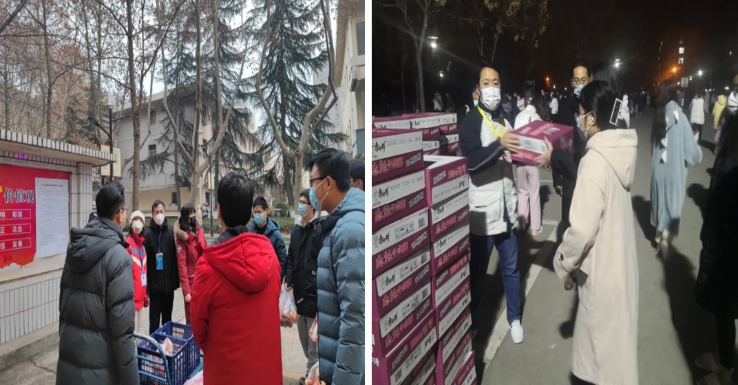 教师党员在疫情面前更是显示了战斗堡垒的作用。公司党委为师生们购买了防护口罩、一次性手套等防疫物资,用特殊党费为全体员工购买了水果,院领导、辅导员、导师代表一起为员工逐一发放,几位研究生在和导师聊天中无意说到想吃肉,白燕老师悄悄做了炸鸡翅送到员工手上。和万霖老师对口服务公司一户居家隔离的老师,他在寒风中排了3个小时的队,为居家隔离的老师购买了充足的菜品,没顾上给自己家买上一棵菜。雁塔校区的研究生经常收到导师、辅导员爱心投喂。鄠邑校区长期坚守的老师们顾不上自己吃饭,组织大家有序检测核酸、分发爱心捐赠和防疫物资。他们还组织本科生开展了宿舍清洁小技能比赛。郭文阁教授为全院研究生做题为“如何撰写学位论文”的线上学术报告。雁塔校区研究生辅导员人手紧缺,冯德全老师、张旋老师二话不说,第一批参加了研工部安排的教师值班;发放物资运输工具短缺,丁继军老师直接把自己家的私家车作为运输工具为大家运输物资,家里有孩子有老人的多位老师安排好老人孩子,上完网课就直接投入志愿服务当中……。据不完全统计,仅雁塔校区就有32位在公司党员教师主动请缨,参加了核酸检测、物资发放、药品购买、宿舍值班等志愿服务。在校的所有教工支部书记带头参加了多项志愿服务。