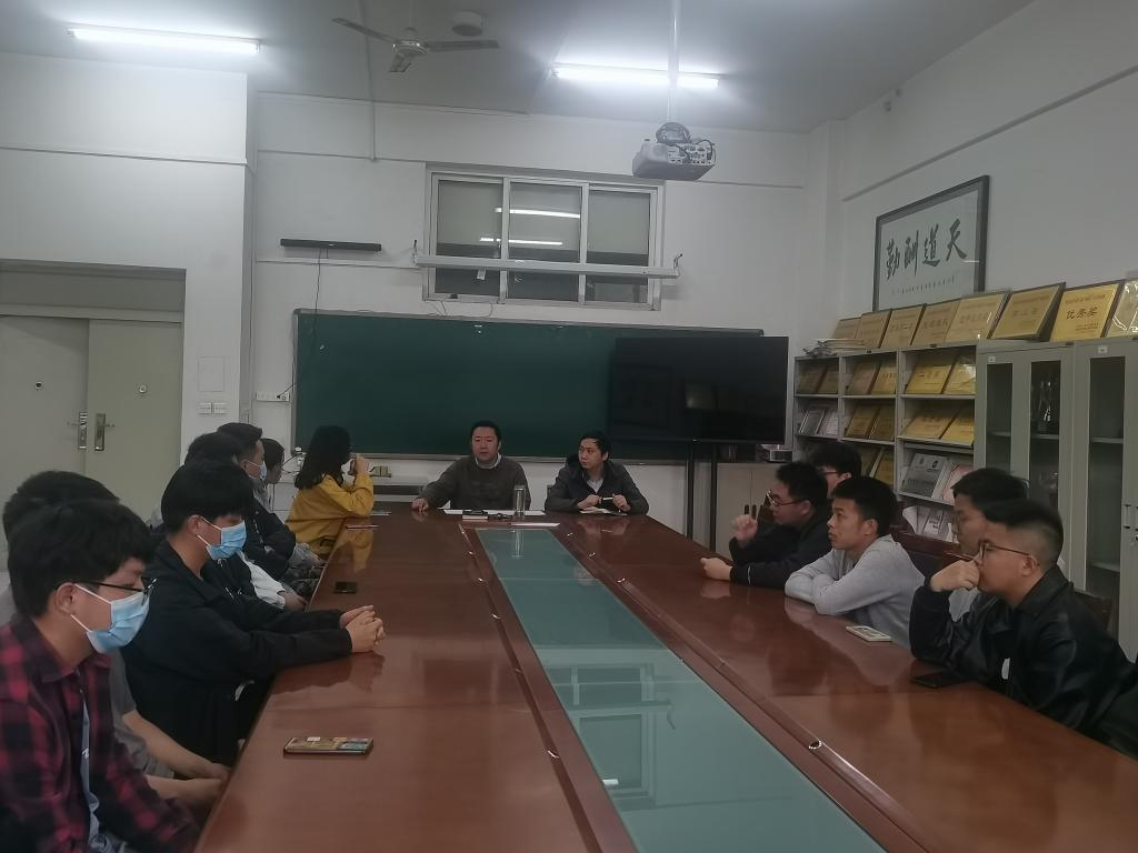学工办主任丁亦喆向各班级通报就业考研进展,横向比较前两年同期数据,以生动的事例教育引导大家振奋精神再出发,早日实现高质量就业。