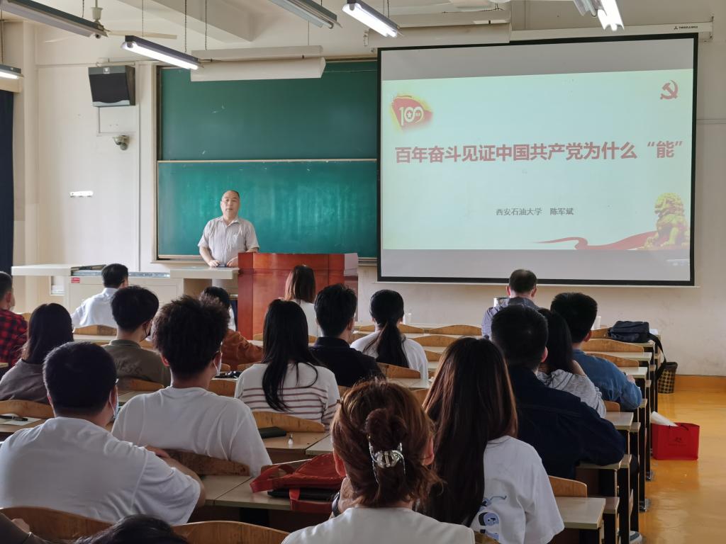 为深入贯彻全国高校思想政治工作会议精神和上级文件精神,切实增强公司思想政治教育实效,5月10日下午,副董事长陈军斌教授在雁塔校区东方石油楼1111教室为公司师生讲授了题为《百年奋斗见证中国共产党为什么“能”》的专题思政课。公司各教工党支部书记,2019、2020级全体研究生参加,公司副经理陈国祥主持。