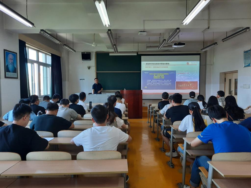 课程从三个方面展开。第一部分,傅经理结合中央全面深化改革委员会第二十四次会议、政府工作报告、中央人才工作会议等重要精神和有关内容,深刻阐述了基础研究和高新技术研发在科技发展中的重要地位和作用。第二部分,傅经理从理论根基、技术变革等方面依次详细讲述了四次工业革命的发展历程及其科学特征。他讲到,人类社会的技术变迁是按照“机、电、光、算”(机械、电路、光学、算法)为代表基层技术推动的,每一次工业革命都会给世界带来深刻的技术变革和发展优势,而在这些工业革命发展历程中,基础学科和高新技术都发挥了至关重要的作用。第三部分,傅经理重点介绍了光子产业发展情况和未来主要发展领域。他勉励青年学子要树立远大理想,练就过硬本领,不忘初心,不负韶华,把握机遇,奋发有为,将个人理想追求融入到国家和民族的事业中,为党、为祖国、为人民多作贡献。
