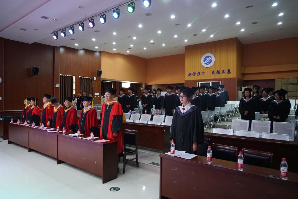 随后,学士学位授予正式开始。公司教授委员会主任、经理傅海威教授为毕业生正冠拨苏、颁发学位证并合影留念。学士学位授予仪式在雄壮的校歌声中结束。