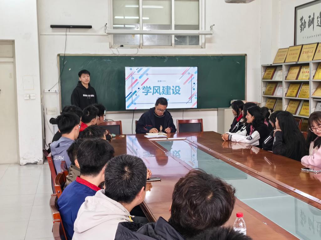 公司2023级辅导员李猛分别组织召开了2023级8个班次的主题班会。李老师结合各班级上学期期末考试成绩进行情况分析。他总结了上学期同学们在老员工活中的表现,鼓励同学们在保证学业优秀的同时积极参与课外活动,发掘自己的兴趣爱好。同时,李老师针对“污点学分”较多的同学进行学业警示,通过家校联合,朋辈互助,学科专项学习小组等方法,提高同学们学习积极性和自身学习能力。